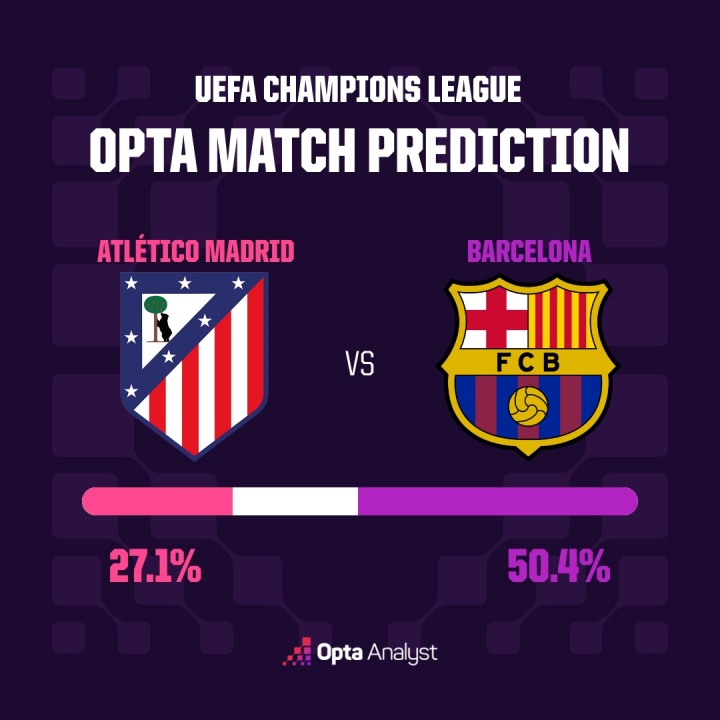 能否见证大逆转?巴萨欧冠次回合翻盘马竞概率20%,利物浦仅14.5%