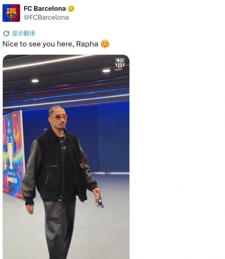 巴萨官方也晒出了拉菲尼亚现身大都会球场的视频,并表示:“很高兴在这里见到你,拉菲尼亚!”