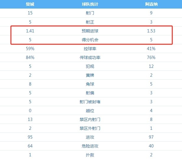 控球率保持在四成以上(41%-59%),射门次数落后的也不多(9-15),在得分机会(5-5)和预期进球数(1.53-1.41)等方面甚至占据优势……阿森纳拥有英超最佳防线,却没能依靠擅长的防反打法赢得比赛,这一方面是因为队内缺少哈兰德这样高效的得分手,机会转化率不高,另一方面是阿尔特塔的临场指挥和建队思路都很保守,导致阿森纳在战略博弈方面落于下风。